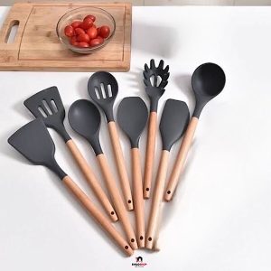 ست کفگیر ملاقه 9 پارچه چوب و سیلیکون امبیکو مدل Embico-2080