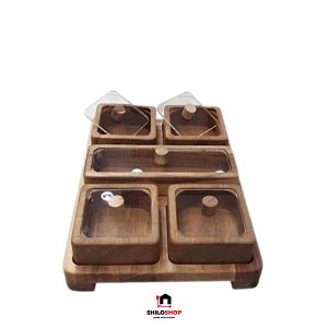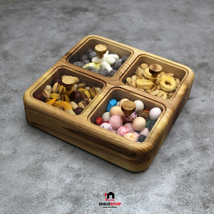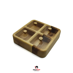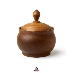 قندان چوبی برند سبزهوم مدل 09 ظرف چوبی شیک و خاص ساخته شده از چوب گردو ،تولید شده توسط دستگاه خراطی ،دارای پوشش آب گریز ، مناسب برای سرویس پذیرایی از جمله: جای قند، قهوه، شکلات، آجیل می باشداردو خوری چهار خانه درب دار سبزهوم مدل 01234