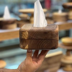 اردو خوری چهار خانه درب دار سبزهوم مدل 01234جا دستمال کاغذی مربع چوب گردو برند سبزهوم مدل 0158
