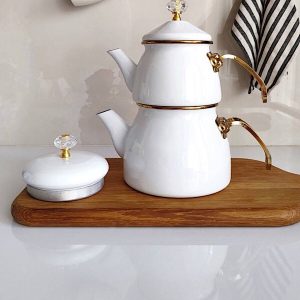کتری قوری سفید طلایی ترکیبی از سادگی و لوکس بودن است. این نوع کتری دارای بدنهای سفید با جزئیات طلایی است که زیبایی خاصی به آن میبخشد. مناسب برای مهمانیها و دورهمیها، این کتری قوریها جلوهای خاص به سفره شما میدهند.