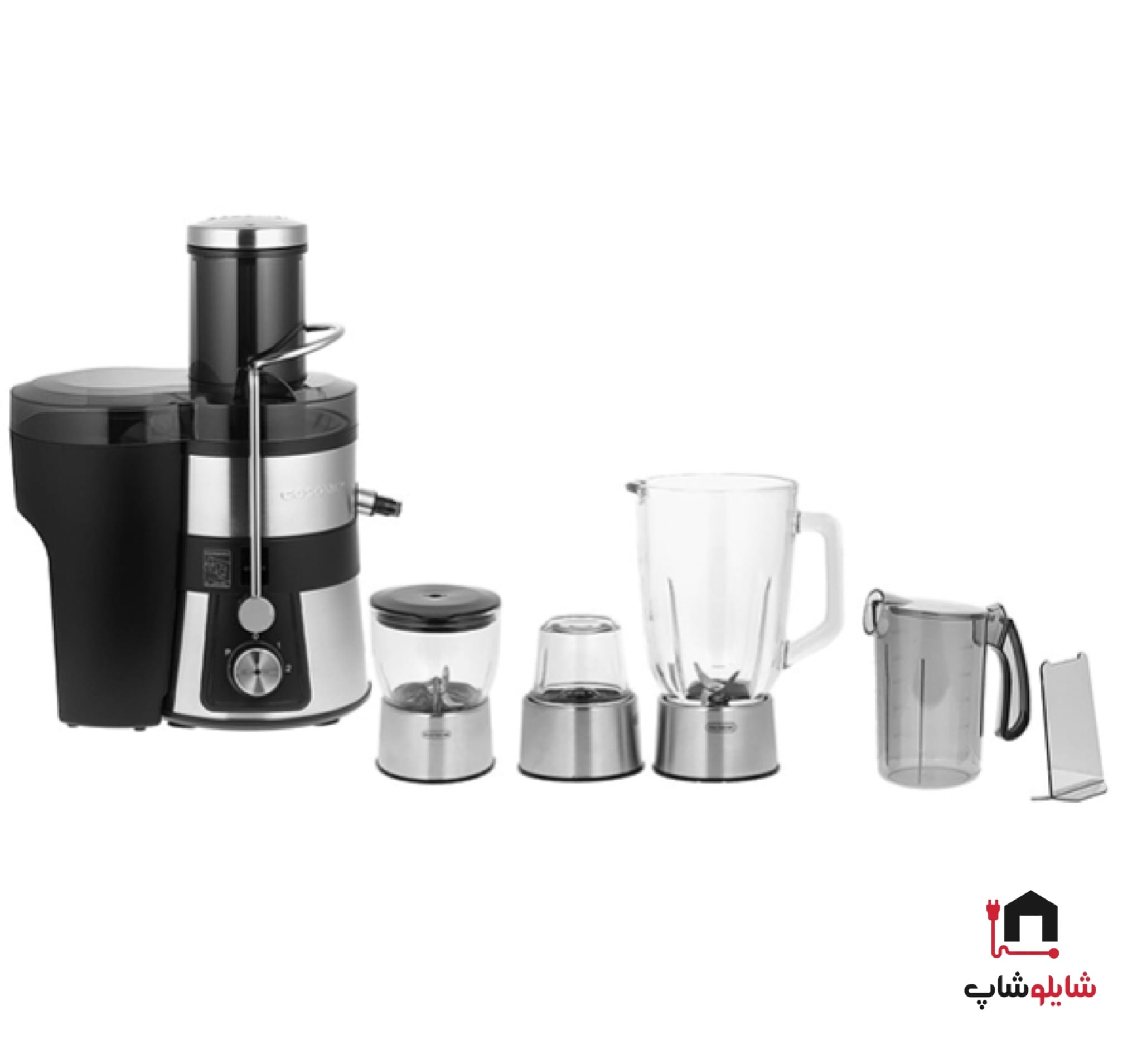 دهانه ورودی بزرگ ۸۵ میلی متر با قابلیت ورود یه سیب کاملا درسته، مخزن تفاله با گنجایش ۲.۴ لیتر، تیغه استیل با صافی ریز که بیشترین حجم آبمیوه را میگیرد، تیغه و صافی آبمیوه گیری از جنس استیل، اهرم دستگاه آبمیوه گیری تمام استیل، دور موتور در دو سرعت قابل تنظیم بهمراه حالت لحظه ای،