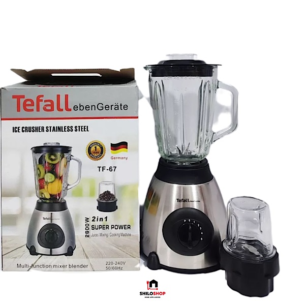 آسیاب و مخلوط کن تفال مدل TF67 یک دستگاه دوکاره با قدرت 2600 وات است که دارای پنج سرعت مختلف میباشد. این دستگاه با 6 تیغه استیل ضد زنگ و کاسه شیشهای پیرکس طراحی شده است. بدنه تمام استیل آن باعث دوام و استحکام بیشتر میشود. این مخلوط کن و آسیاب مناسب برای تهیه انواع نوشیدنیها، سوپها و آسیاب کردن مواد غذایی مختلف است.