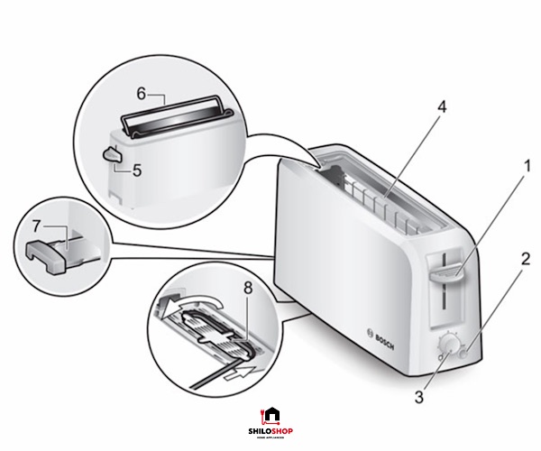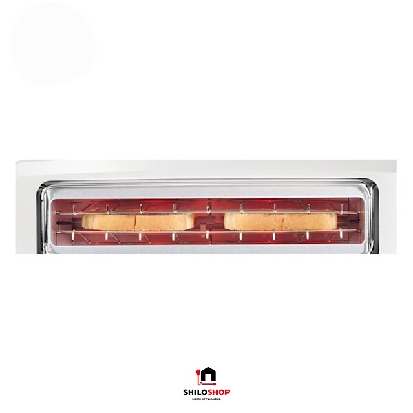 برای کار با توستر تنها کافیست نان را در جایگاه مربوطه قرار داده و دسته مخصوص را به سمت پایین بکشید تا قفل شود، پس از برشته شدن نان و اتمام عملکرد تنظیم شده دستگاه بصورت خودکار نان ها را بالا می آورد.