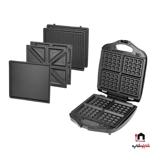 توان ۱۳۰۰ وات چهار خانه یا هشت ساندویچ مثلثی جنس بدنه از پلاستیک مقاوم و عایق به حرارت صفحات از پوشش نچسب صفحات جدا شونده و قابل شستشو مجهز به ترموستات دارای محافظ ایمنی در برابر گرم شدن بیش از حد