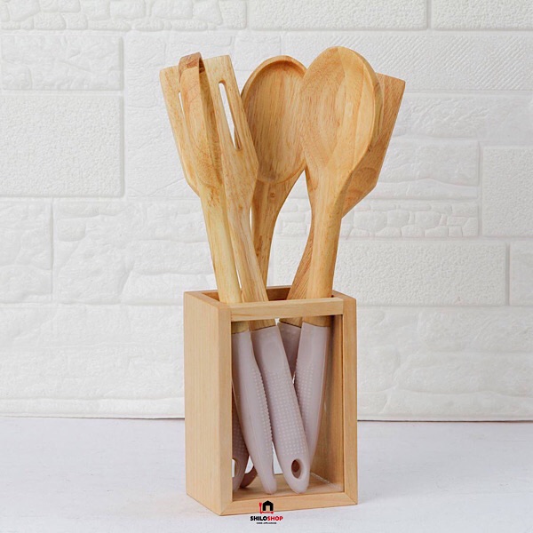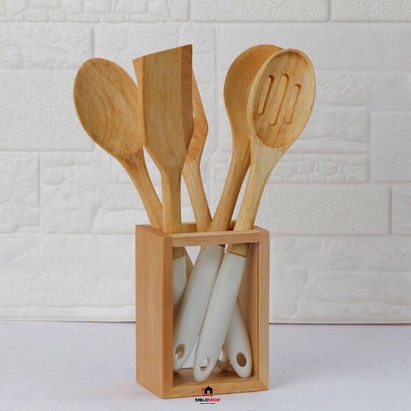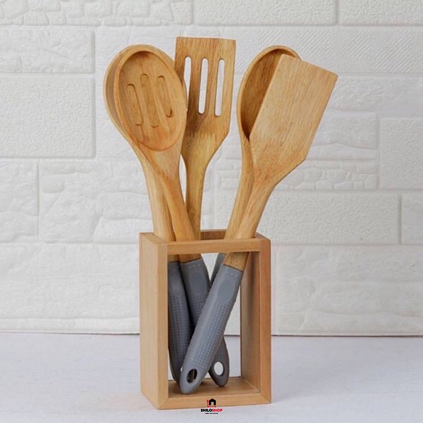 ست کفگیر ملاقه 5 پارچه چوب شیشه امبیکو مدل Embico-2068