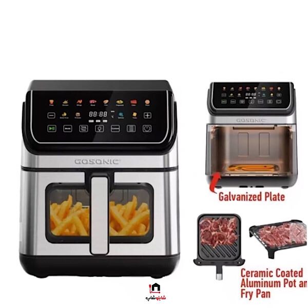 سرخ کن بدون روغن گوسونیک مدل 958 به رنگ مشکی سیلور میباشد که جنس بدنه دستگاه از نوع استیل ضد زنگ به همراه پلاستیک مقاوم میباشد. این دستگاه دارای توان مصرفی قدرتمند 2000 وات به همراه دو المنت میباشد که المنت بالا دارای توان 1500 وات و المنت پایین توان 500 وات را دارا است بسکت و صفحه داخلی دستگاه از نوع آلومینیوم با روکش سرامیک میباشدکه در دو طبقه مجزا و بصورت همزمان امکان پخت و پز را فراهم میکند ظرفیت دستگاه 8 لیتر میباشد وصفحه نمایش آن از نوع دیجیتالی رنگی بوده که 12 برنامه متنوع پخت ازسایر مشخصات این دستگاه میباشد این دستگاه زیبا جزو قوی ترین و جدیدترین سری سرخ کن های بدون روغن برند محبوب گوسونیک محسوب میشود.