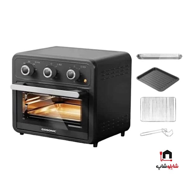 طراحی جدید دو کاره با قابلیت استفاده بعنوان فر برقی و سرخ کن بدون روغن، گنجایش ۱۲ لیتر، دارای ۴ عدد المنت در قسمت بالا و ۲ عدد المنت در قسمت پایین فن بزرگ در قسمت بالا، تنظیم درجه حرارت از ۶۰ تا ۲۳۰ درجه سانتی گراد، تایمر ۶۰ دقیقه ای، دارای ۵ منو پخت شامل: پیتزا، سرخ کن بدون روغن، توست کردن، پخت و …، دریچه قسمت پایین دستگاه باز شو جهت نظافت راحت تر، دارای ۳ عدد سینی جهت پخت و پز، گیره مجزا جهت خارج کردن سینی ها، توان مصرفی ۱۵۰۰ وات، دارای لامپ داخلی
