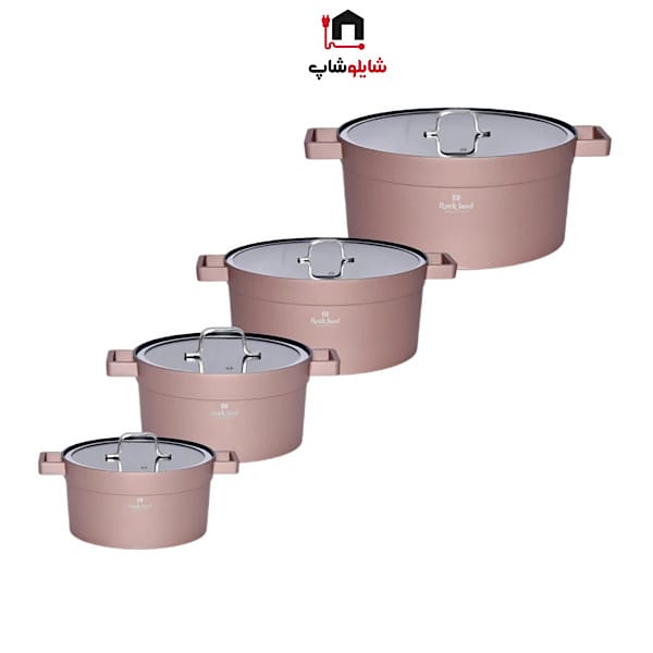 سرویس قابلمه راکلندمقاوم در برابر حرارت می باشد پوشش داخلی قابلمه گرانیت فوق العاده با کیفیت می باشد سرویس 16 پارچه شامل: قابلمه سایز 20، 24، 28، 32 با درب شیشه ای حاشیه فلزی تابه سایز 24 و 28 با درب شیشه ای حاشیه فلزی زیر قابلمه ای