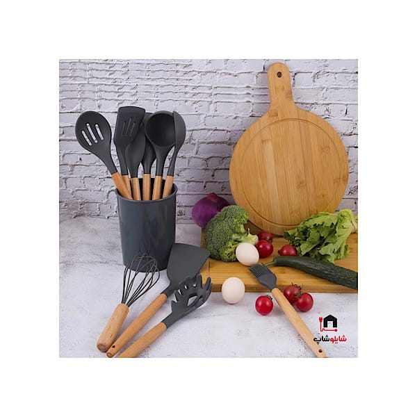 سرویس کفگیر Kitchen Set ساخته شده از با کیفیت ترین مواد سیلیکون با استاندارد FDA و بدون BPM ، دسته های چوبی از جنس بامبو و یک ظرف نگهدارنده از جنس پلاستیک میباشد. این سرویس از وزن متعادل و دیزاین منحصر بفردی برخوردار است که باعث میشود در دست گرفتن آن آسان و پخت و پز را راحت می کند. سیلیکون به کار رفته در این محصول ساخته شده از مواد غیر سمی ، بی بو و سازگار با محیط زیست است. این مجموعه وسایل آشپز خانه در برابر درجه حرارت سرما تا 30- و گرما 230+ درجه سانتی گراد مقاومت دارد. انعطاف پذیری ، رویه های نرم از خراشیدن و آسیب رساندن به ظروف شما جلوگیری میکند و همچنین باعث کاهش سر و صدا هنگام آشپزی می شود. این مجموعه متشکل از 11 عدد کفگیر ملاقه و 1 عدد ظرف نگهداره می باشد.