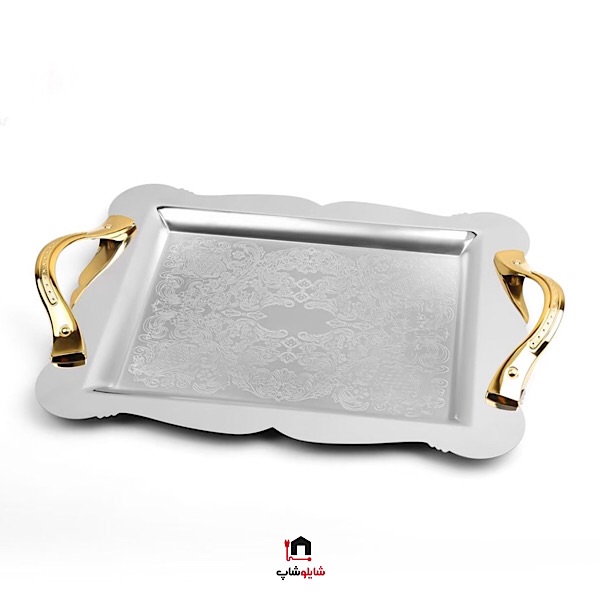 سینی دالبری پایه دار بزرگ کروم و طلایی اسپرت 3168