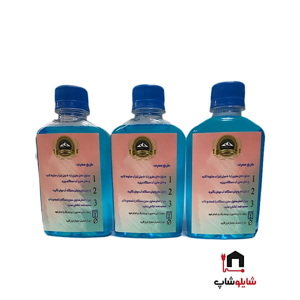 1 محلول داخل بطری را با ۵٠٠ میلی لیتر آب مخلوط کنید و داخل مخزن آب دستگاه بریزید