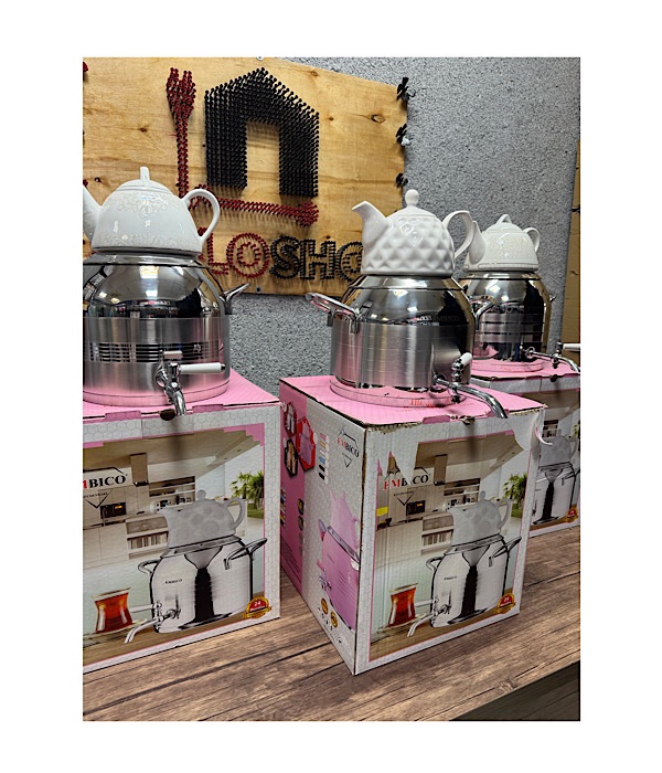 ست کتری و قوری 3050 محصول جدید امبیکو محصولی بسیار زیبا و با کیفیت این محصول از جنس استیل ساخته شده است و کفِ چدن 7لایه و دسته های تمام استیل و حجم گنجایش کتری این محصول 5 لیتر می باشد